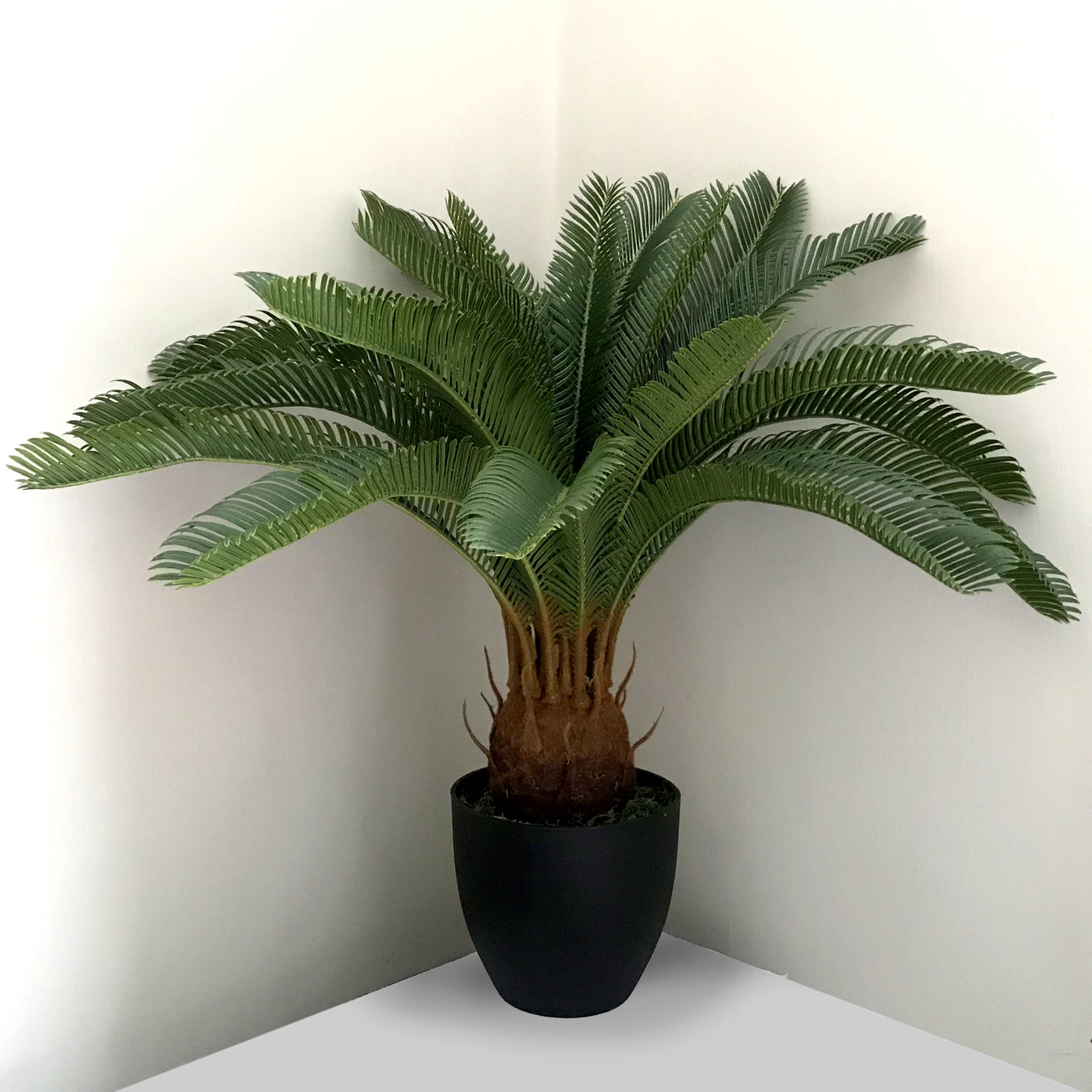 Brilliant for offices with its modern, minimal shape and green fronded leaves this artificial Cycas Palm plant is a popular choice for modern interiors. This Cycas plant has a tropical look with authentic trunk detailing and realistic leaf formation arrangement. A bold and appealing choice suitable for both residential and commercial applications.